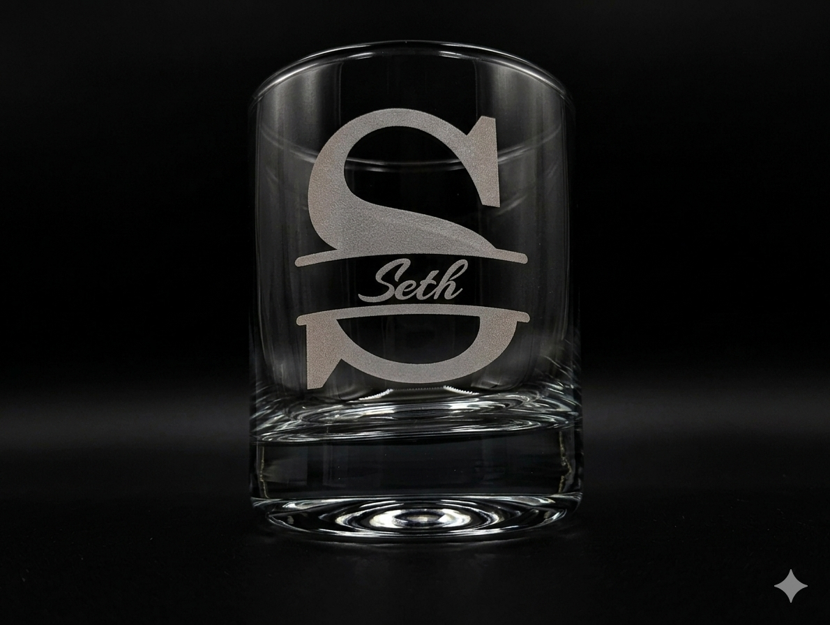 Upgrade your bar with a whiskey glass as unique as your collection. Our personalized glassware combines classic design with custom craftsmanship, featuring a sharp, precision-etched monogram that stands out in any setting. It’s the perfect heirloom-quality gift for the true whiskey enthusiast.